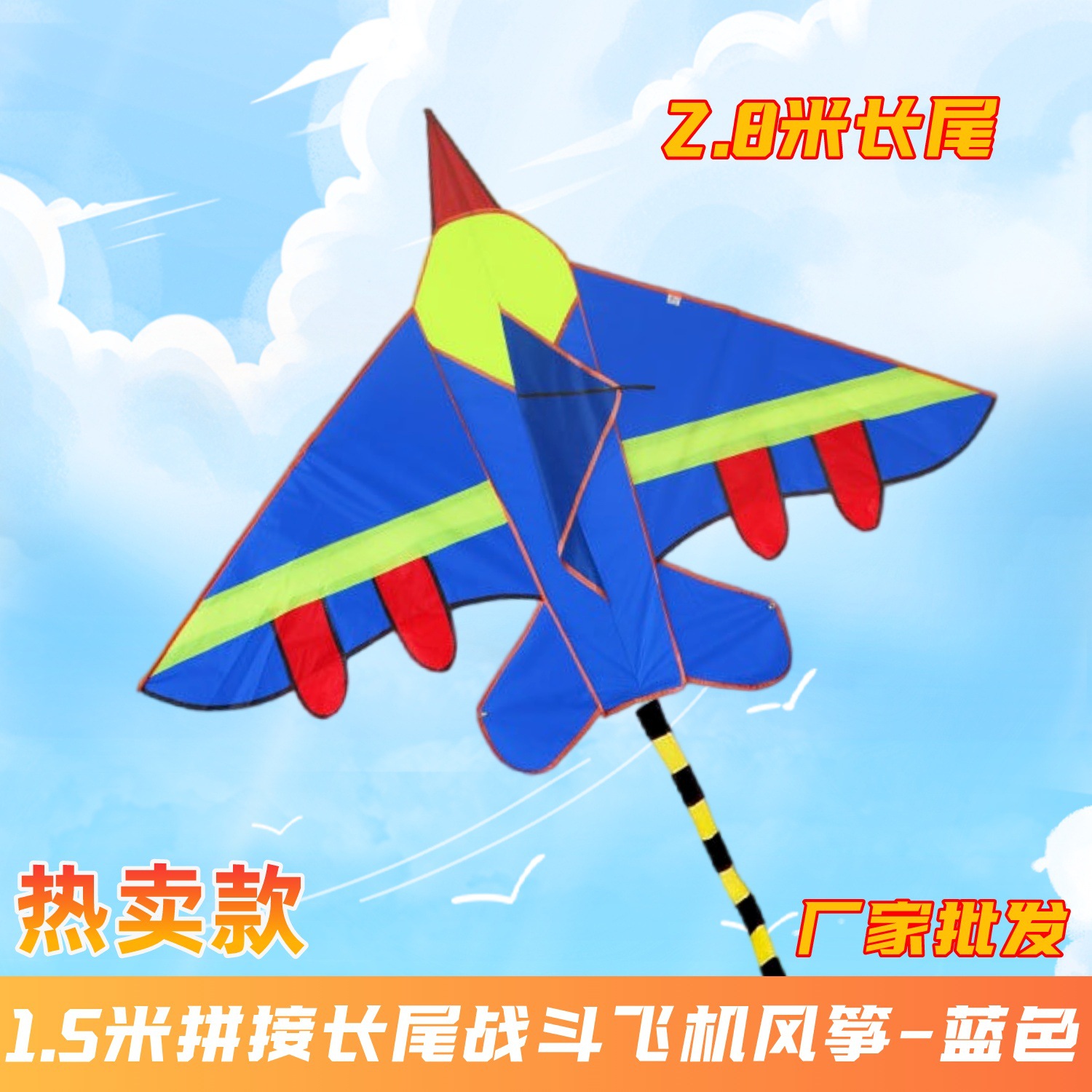1.5米拼接戰鬥飛機風箏藍色-布袋