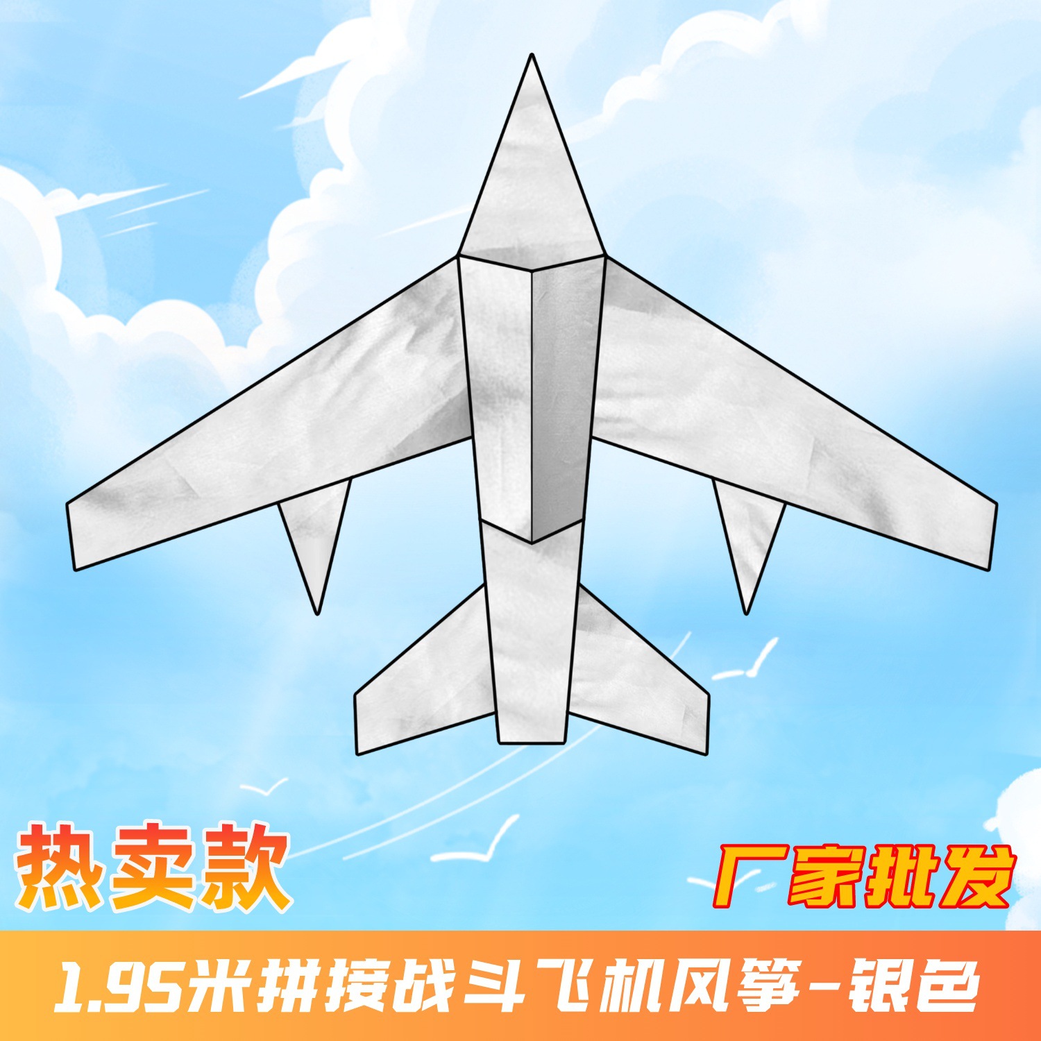 1.95米戰鬥機風箏-銀色