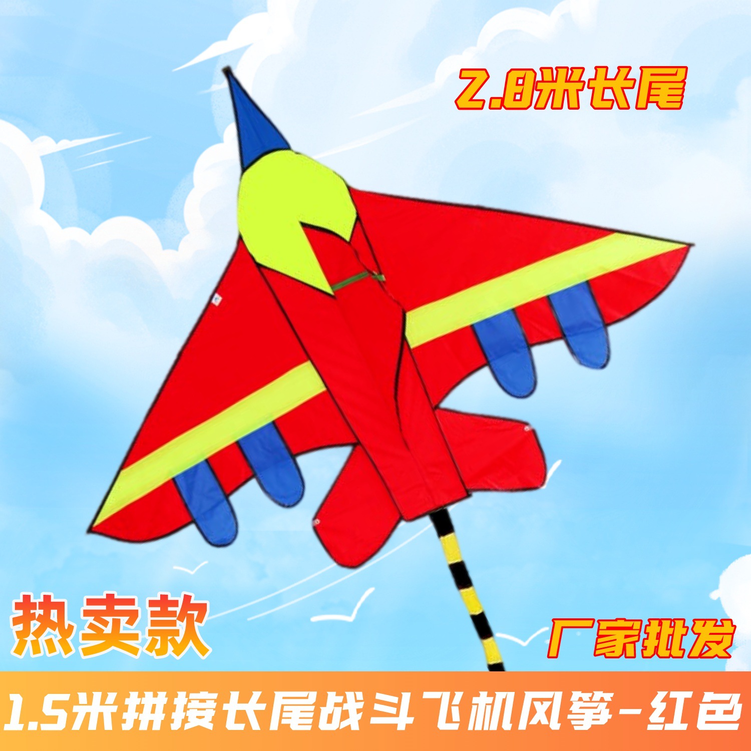 1.5米拼接戰鬥飛機風箏紅色-布袋