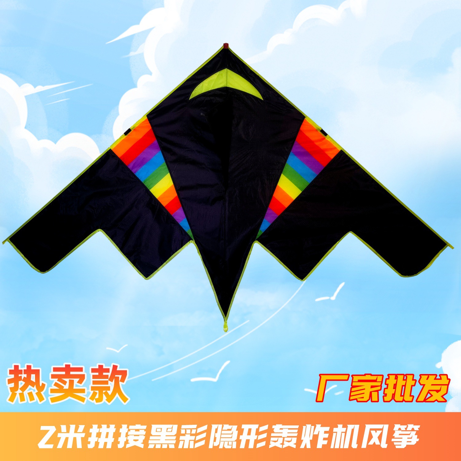 2米拼接黑彩隱形轟炸機風箏-布袋