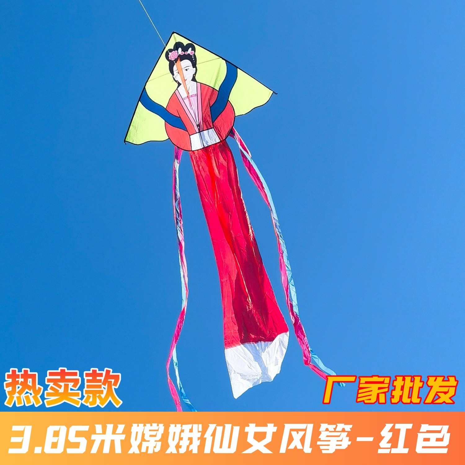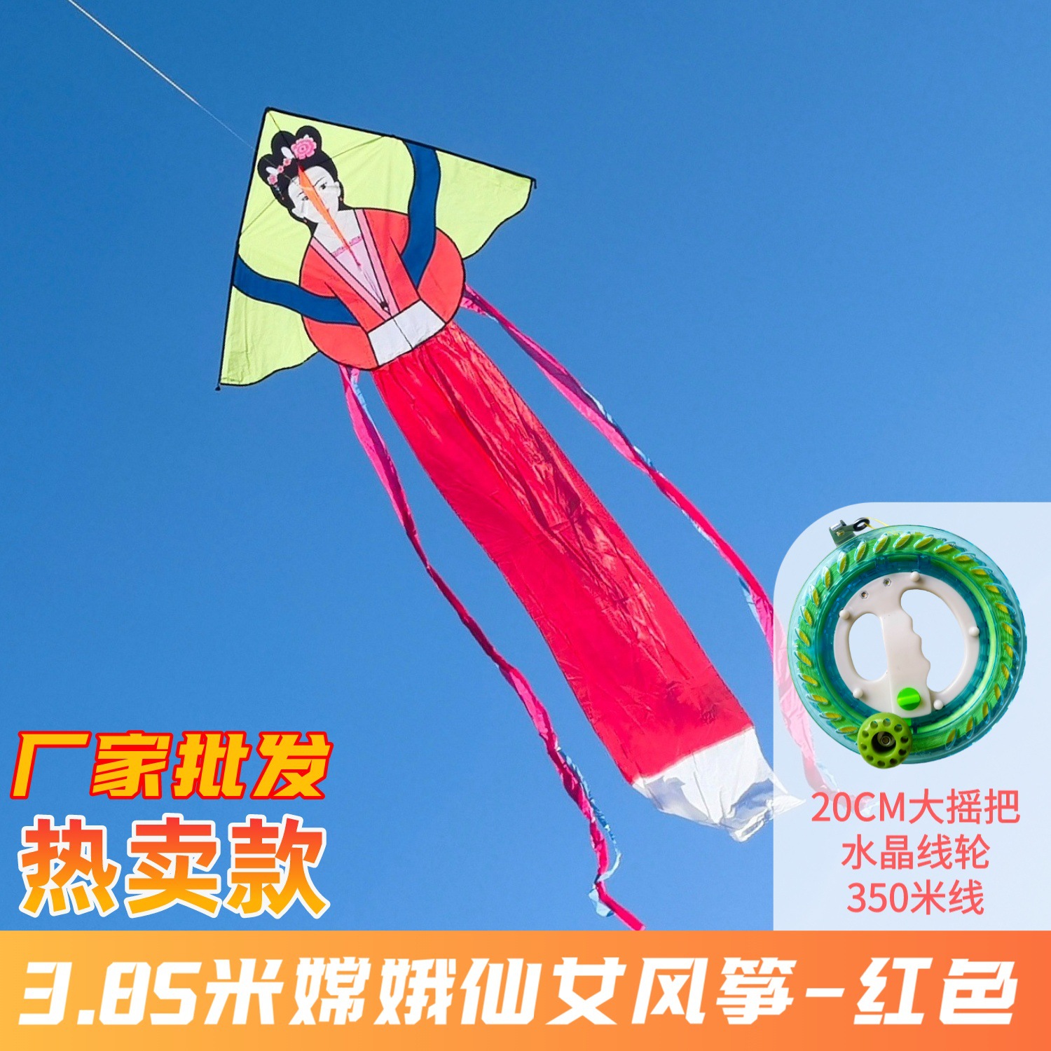 Moon Goddess Fairy Kite 1.6x3.85 meters - Red + 16CM Spool + 150-meter String