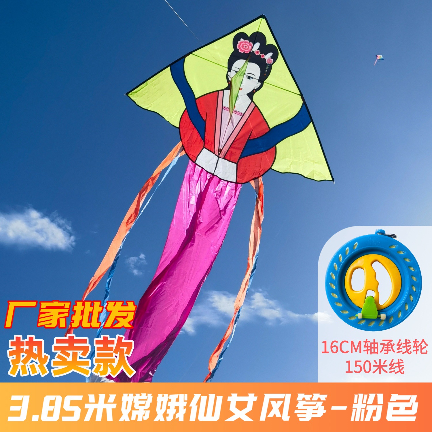 Weifang New Arrival Fairy Kite Wholesale: Triangular Chang'e Kite—Perfect for Adults and Kids, Large Size, Easy to Fly, with Reel and Fabric Bag