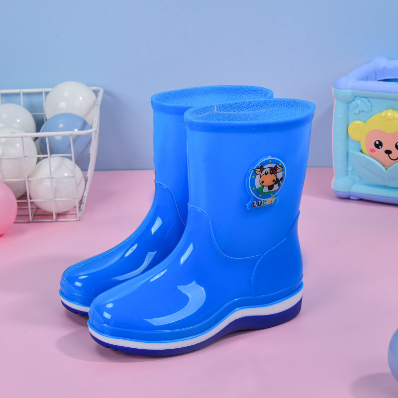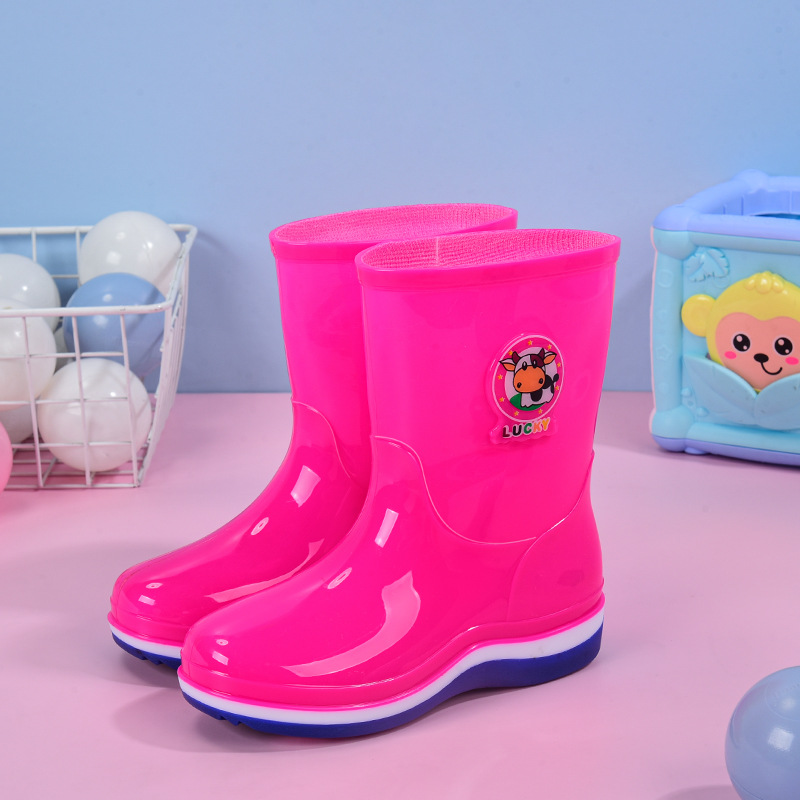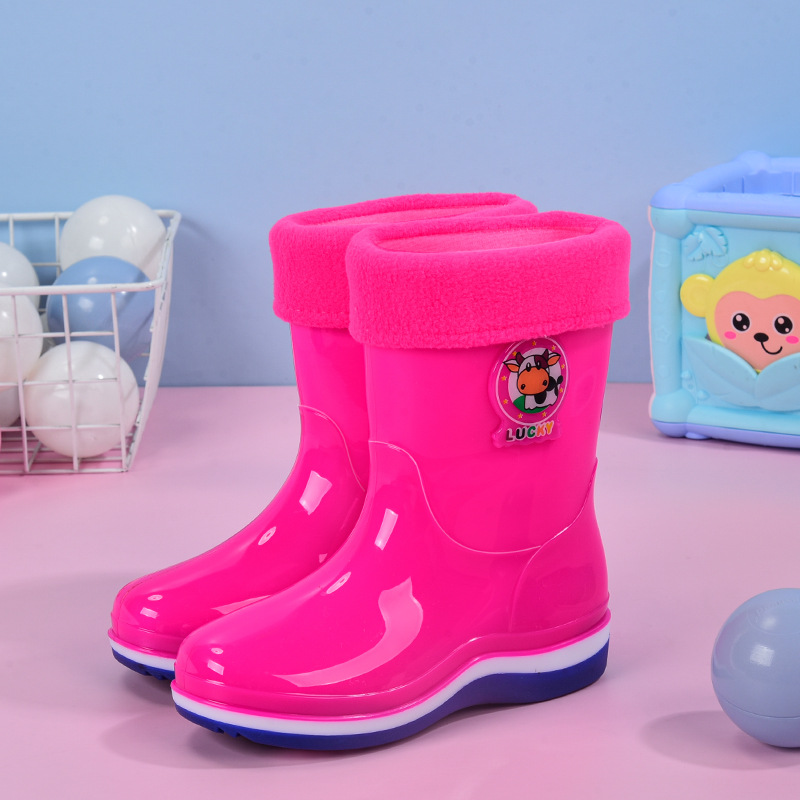 Cartoon children's rain boots, comfortable waterproof children's rain shoes with cotton for warmth, rubber water shoes and rain boots, factory wholesale