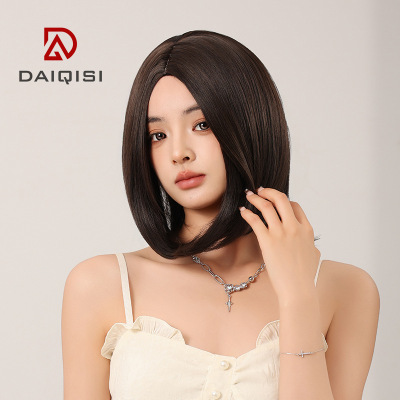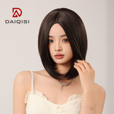 Wig full head cover factory wholesale wig with long middle straight hair, face-fitting, short straight hair, off-center straight hair, collarbone length hair wig.