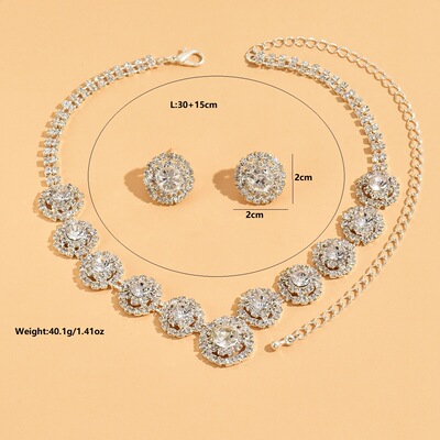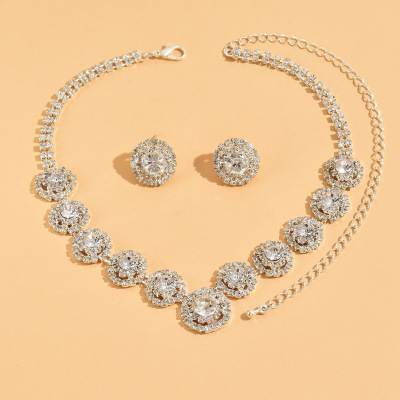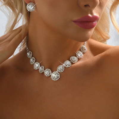 New African Bride Set Decorative Accessories Water Diamond Full Diamond Silver Women's Necklace Earrings