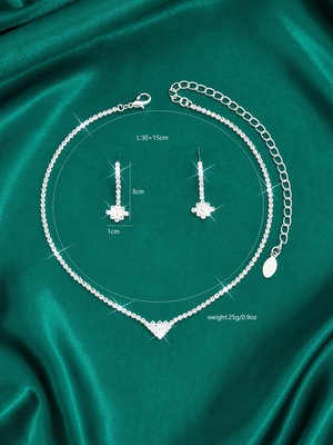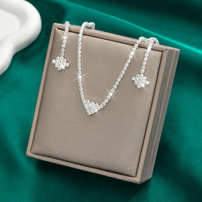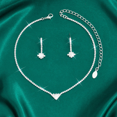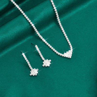 跨境貨源熱賣外貿飾品滿鑽桃心項鍊耳環套鏈結婚禮服首飾簡約套裝