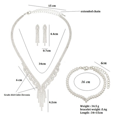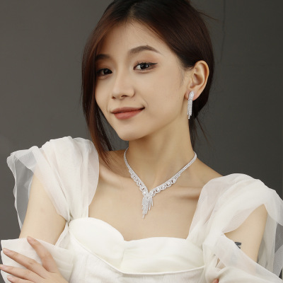 20221跨境熱賣 廠家 高檔鋯石耳環耳釘項鍊手鍊三件套婚禮首