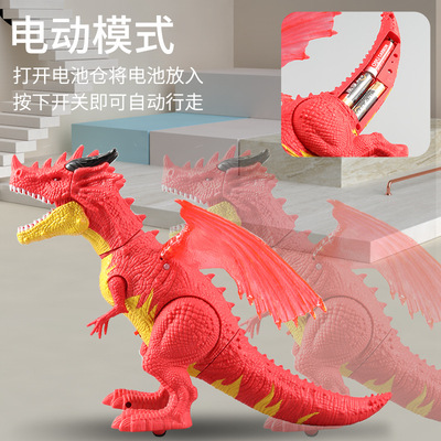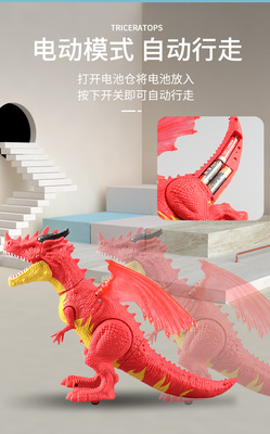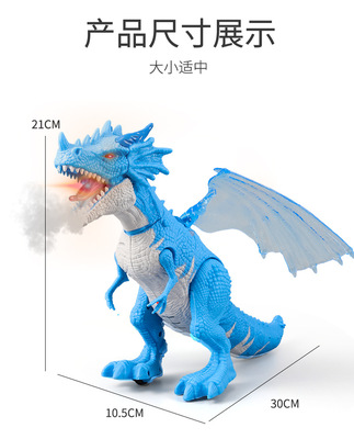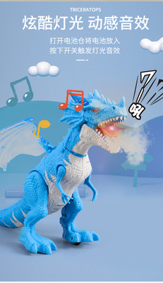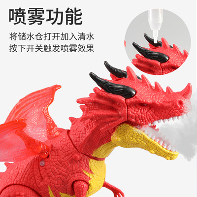 Cross-border children's electric mist spray toy European flying dragon with lights and sounds spray walking dinosaur model toy