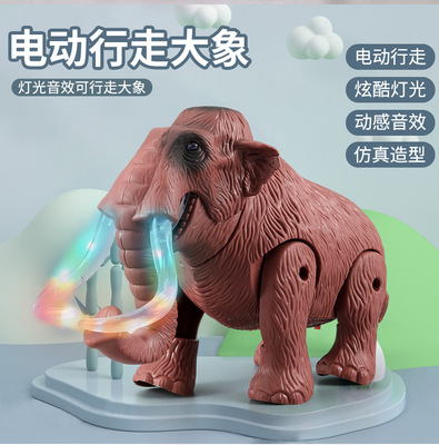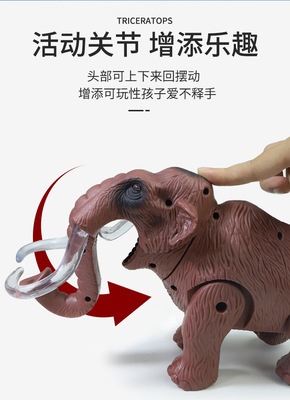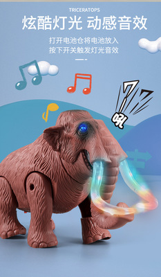 跨境兒童電動玩具仿真猛獁象 帶燈光叫聲可行走電動恐龍模型玩具