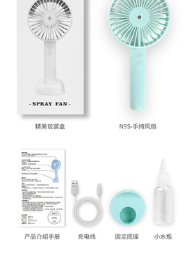 Wholesale New N9S Handheld Spray Fan USB Mini Charger Portable Silent Hydrating Student Desk Fan
