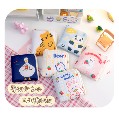 Yins Japanese-style sanitary pad storage bag, large capacity portable cute earphone storage bag, cartoon sanitary pad bag