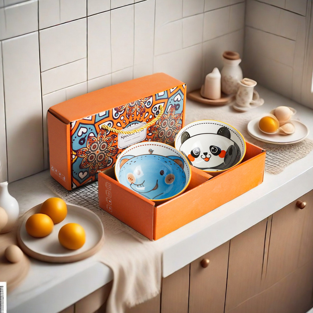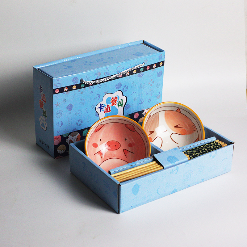 Japanese-style ceramic bowl and chopstick set cartoon children's bowl gift tableware gift box opening gift wholesale promotional gift box