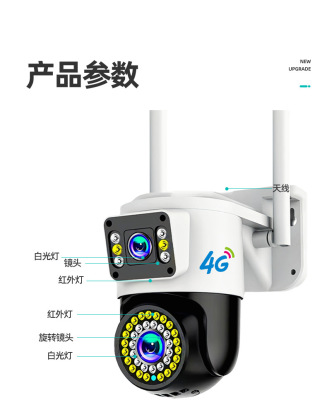 Dual-lens indoor/outdoor wireless WiFi monitor with 4G HD night vision, suitable for home use
