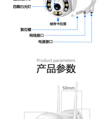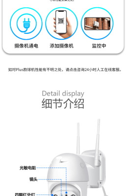 Wireless Camera Outdoor Waterproof Monitor with WiFi HD Outdoor Full Color Voice Intercom Network 1080P