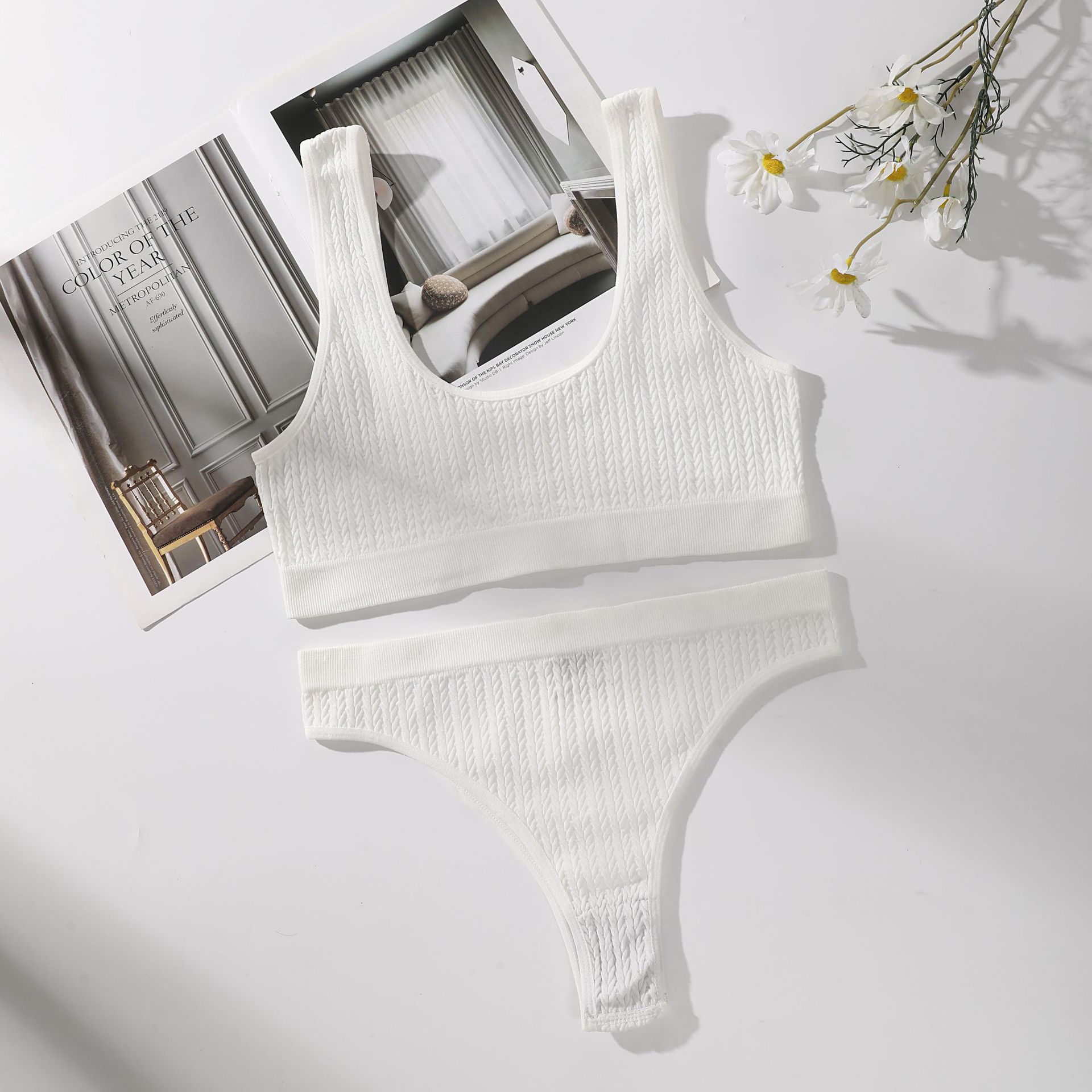 European and American cross-border sports yoga set, patterned beautiful back underwear, no rims, comfortable and breathable bottoming vest, T underwear
