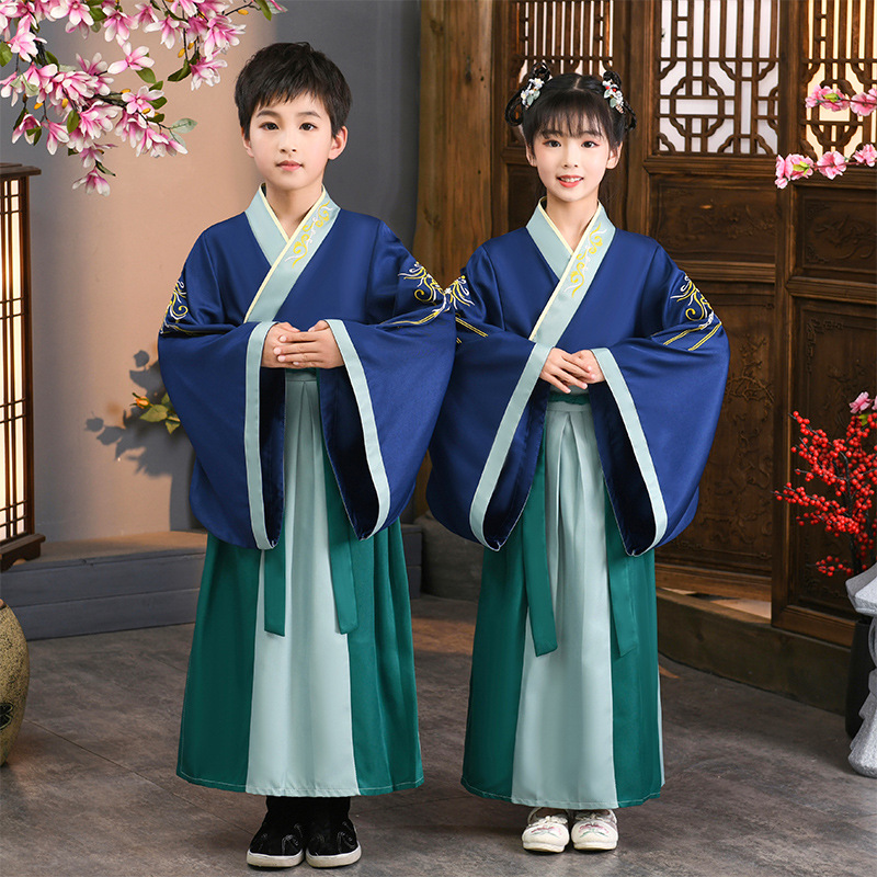 Children's Hanfu Traditional Costume for Boys and Girls, Classic Style, School Student Costumes, Three Character Classic, Primary School Students' Calligraphy Ceremony and Performance Costume