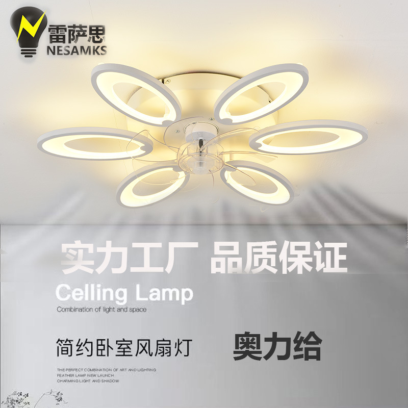 跨境智能變頻風扇燈臥室現代簡約客廳燈家用北歐餐廳吸頂電扇燈