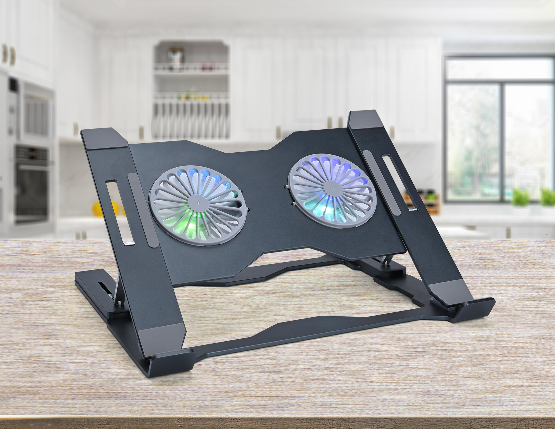 Laptop stand with folding design, heat dissipation, dual fan cooler, for tablets and computers