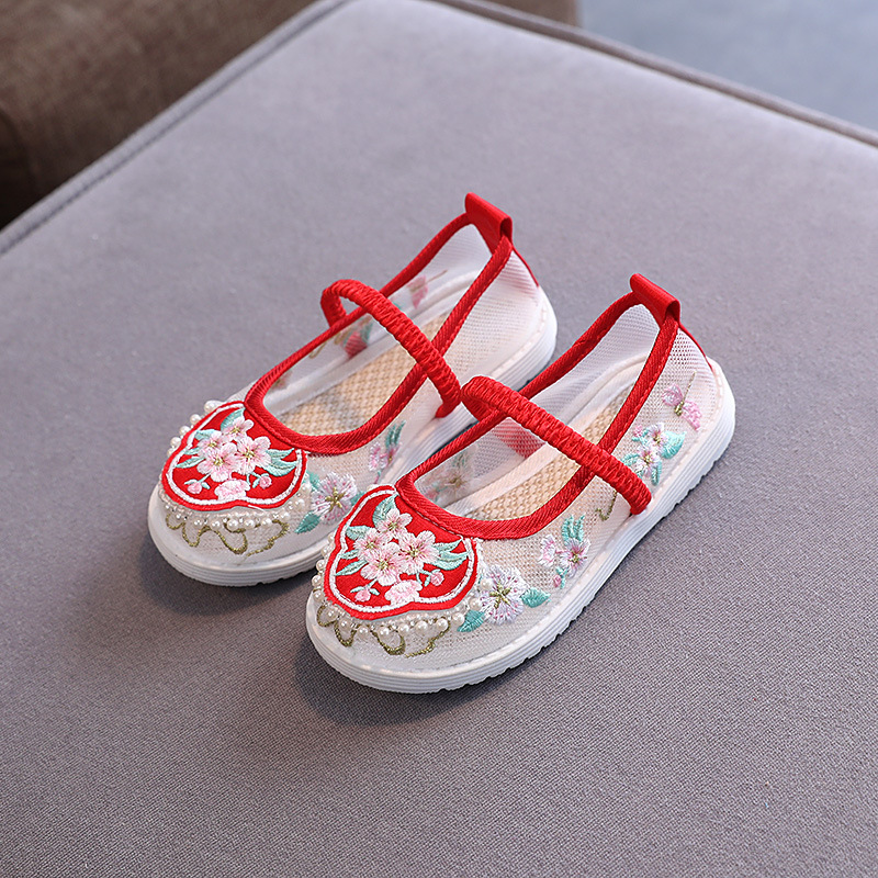 新款女童繡花鞋古風鏤空網鞋中國風防滑耐磨布鞋漢服鞋親子鞋