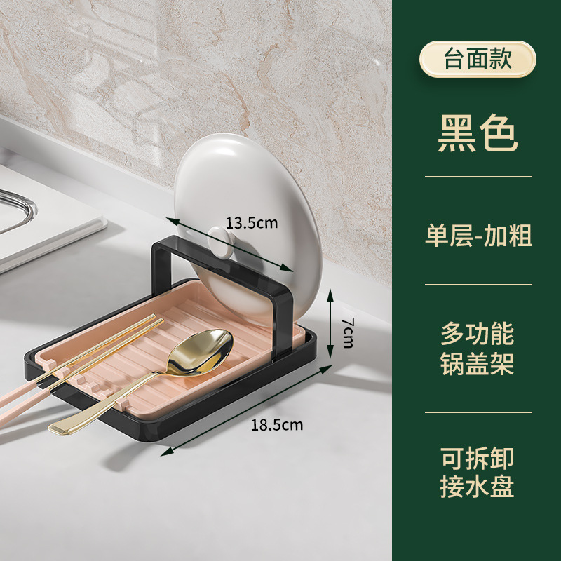 Kitchen countertop pot holder with drainage tray, pot lid magic multi-layer storage rack, luxurious pot lid holder
