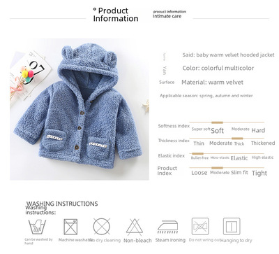 Children's flannel coat autumn and winter thickening boy's hooded sweater lined girl's autumn wear baby and toddler coat children's clothing