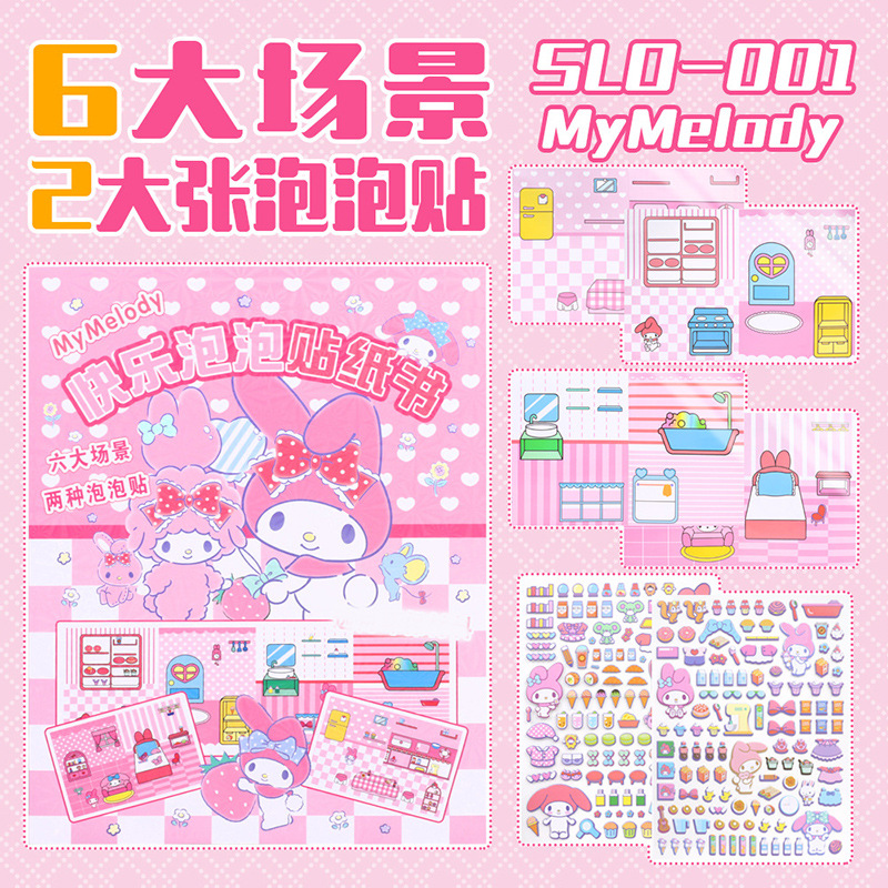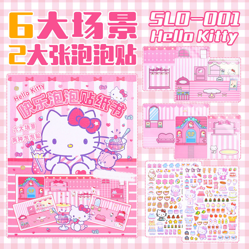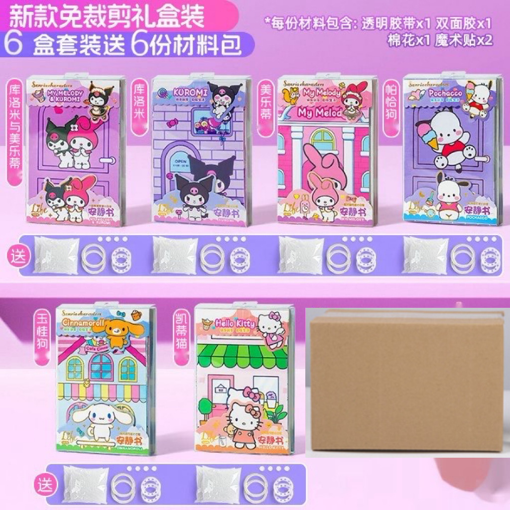 New No-Cut Cutie Pop Puchi Quiet Book DIY Sanrio Mello Ti No Cutting Craft Sticker Book