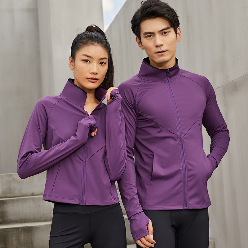 Outdoor sports jacket for men and women, warp knitting knit anti-wrinkle fitness training stand-up collar running top, moisture-wicking and quick-drying.