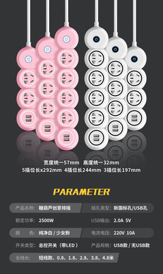 Multi-functional high-power socket USB extension cord smart charging strip power strip plug adapter home conversion socket
