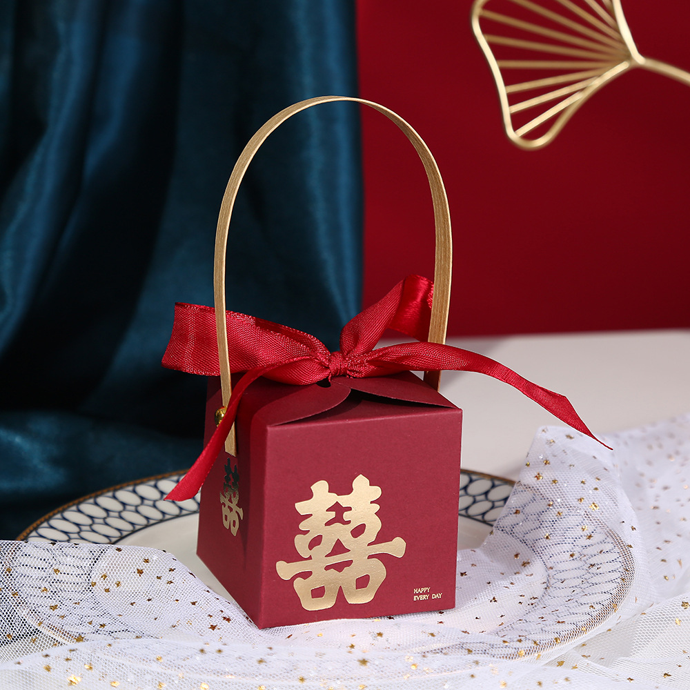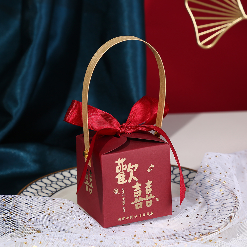 Creative Wedding Celebration Candy Box New Square Hand-Held Bow Candy Box Marriage Gold Foil Guest Gift Candy Box Wholesale