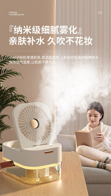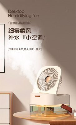 New Dual-Spray Humidifying Fan with Remote Control and Timer, Home Use Small Fan with Quiet High Wind, USB Charging Fan