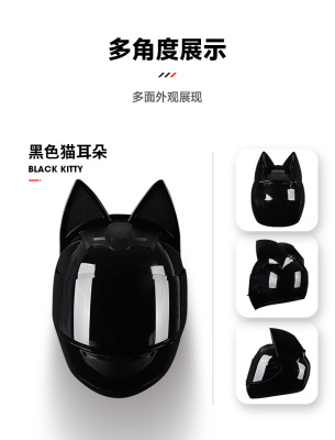 HNJ Women's Full Face Electric Motorcycle Helmet with Cat Ears, Bluetooth 3C Certified, Summer Motorcycle Helmet, Manufacturer Wholesale