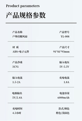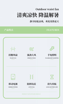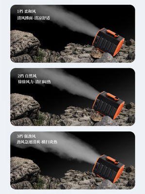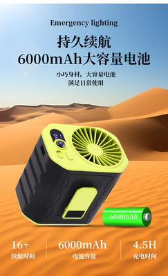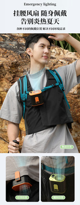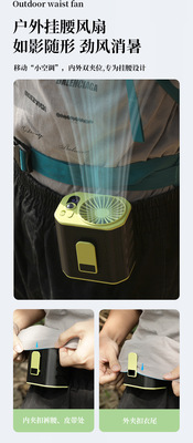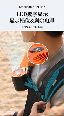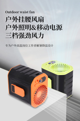 2024年新款戶外掛腰風扇 數顯6000毫安四合一戶外登山活動掛腰風