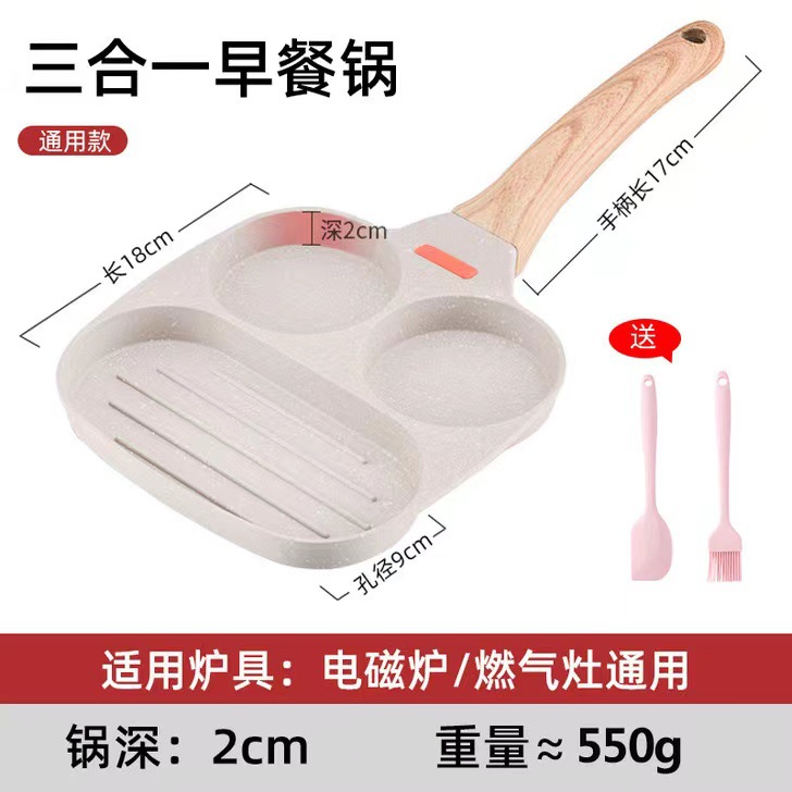 Cross-border egg cooking magic three-in-one egg pan non-stick breakfast pan flat egg hamburger pan home use steak pan