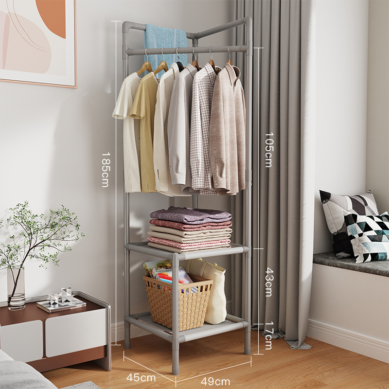 Corner Wall Clothes Rack, Corner Hanger, Floor Standing Bedroom Corner Wardrobe Hanger, Home Combination Storage Clothes Rack for Corner