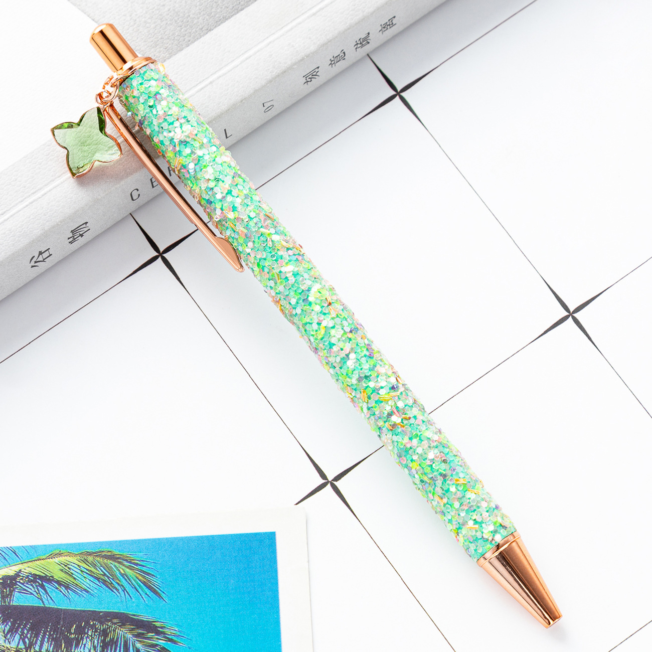 金粉四葉草吊墜圓珠筆 女生過生日送禮會議禮品筆嘉獎紀念金屬筆