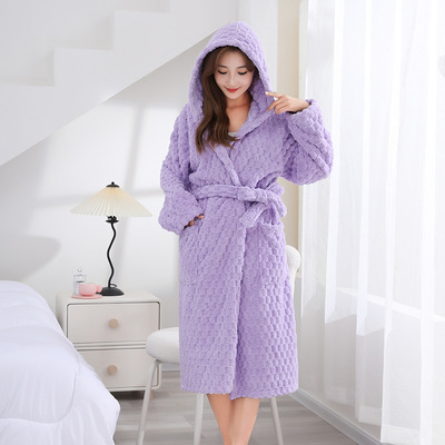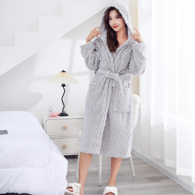 New Cloud Pattern Hooded Robe with Thick Coral Fleece Robe Autumn/Winter Loose Robe Couple Long Home Sleepwear