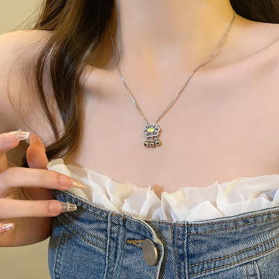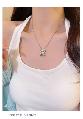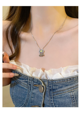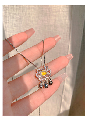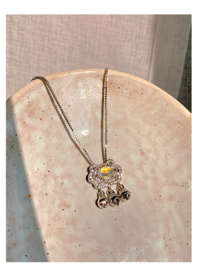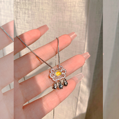 Charming Moonlight Agate Longevity Lock Bone Chain, Niche Peace and Good Fortune Lock, Stylish Korean Version, Diamond-embellished Personality Necklace