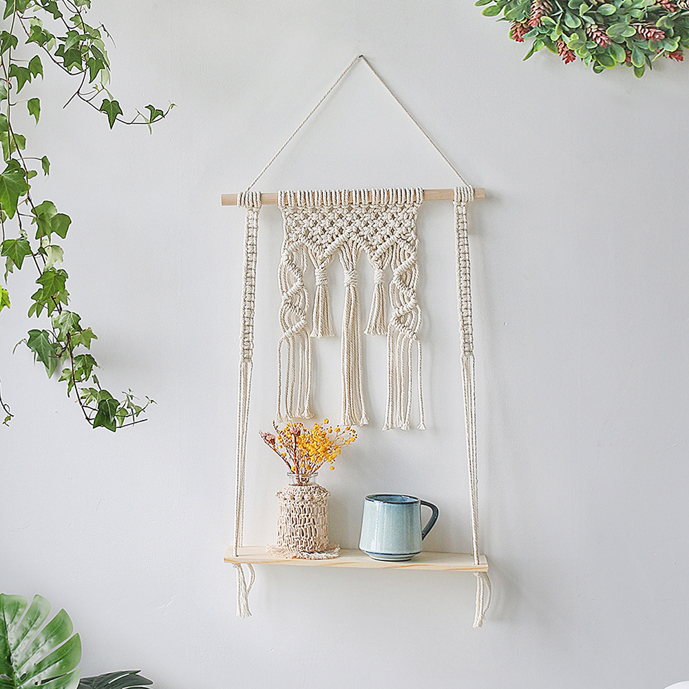 Ins Bohemian Style Fringe Tapestry Wall Shelf Decor Hand Woven Tapestry Flower Stand Fringe Wall Hanging Decor