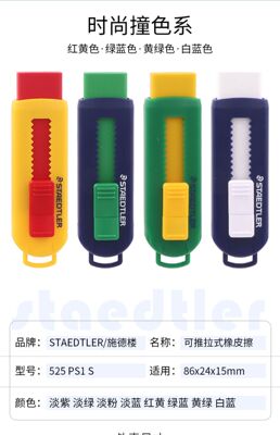 德國施德樓525橡皮學生專用推拉式馬卡龍可換替芯彩色推式橡皮擦