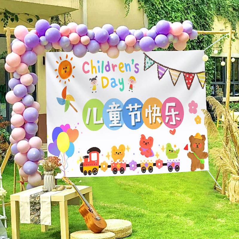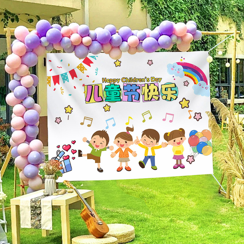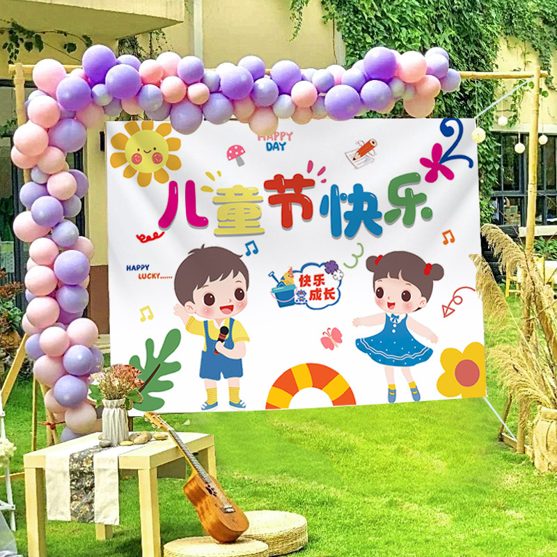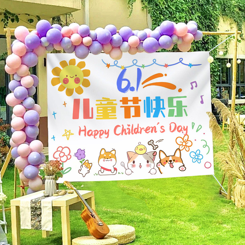 2024新款六一兒童節掛布學校教室幼兒園活動拍照道具背景布戶外裝
