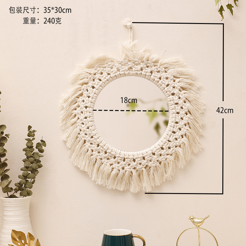 波西米亞棉繩手工編織流蘇亞克力裝飾鏡 簡約家居民宿臥室牆飾壁