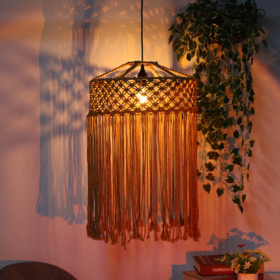 Amazon Cross-border Hand-woven Cotton Rope Pendant Lamp for Bedroom - Modern Minimalist Style, American Decor with Retro Shade