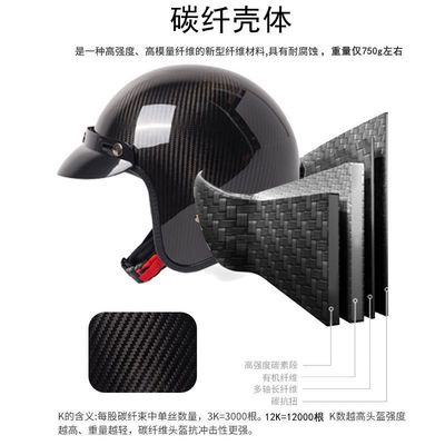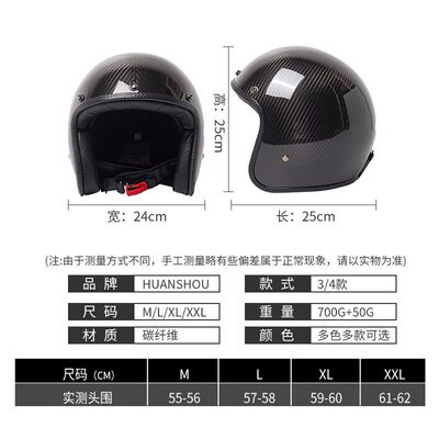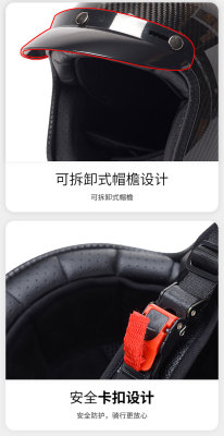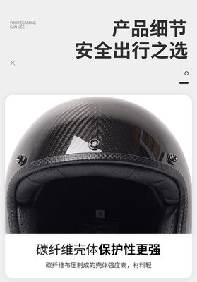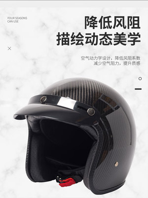 Carbon Fiber Three-Quarters Half-Helmet, Vintage Style, Universal for All Seasons
