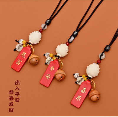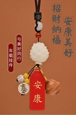汽車後視鏡掛件平安符吊墜網紅車載吊飾提根蓮花平安喜樂好運暴富