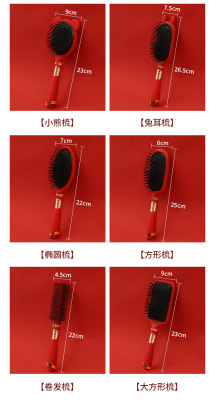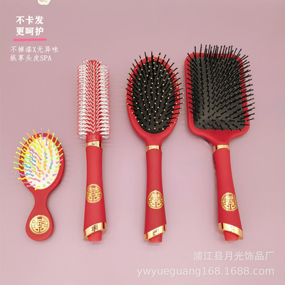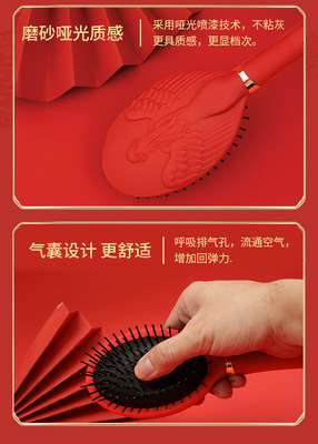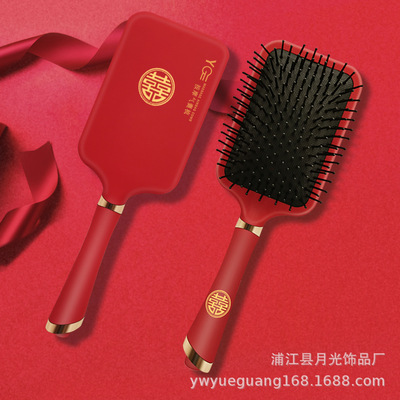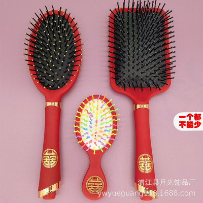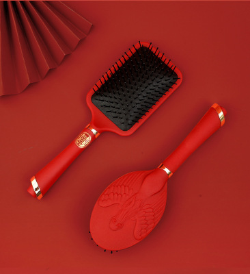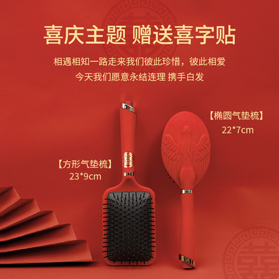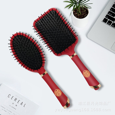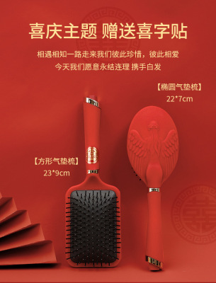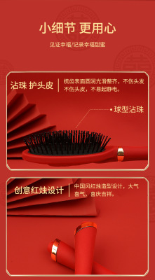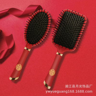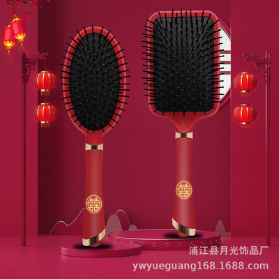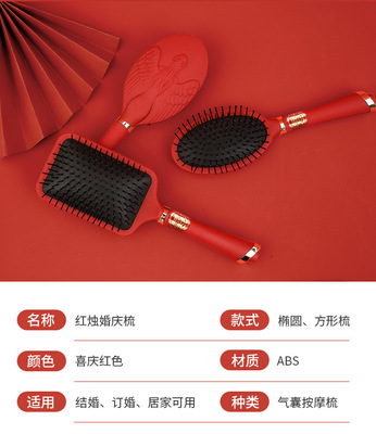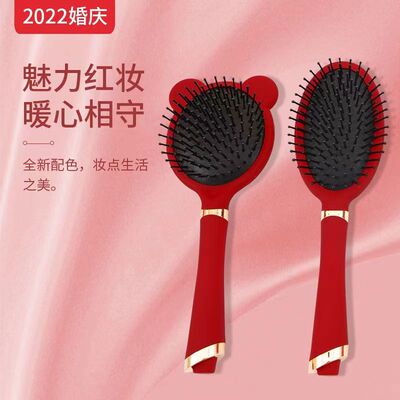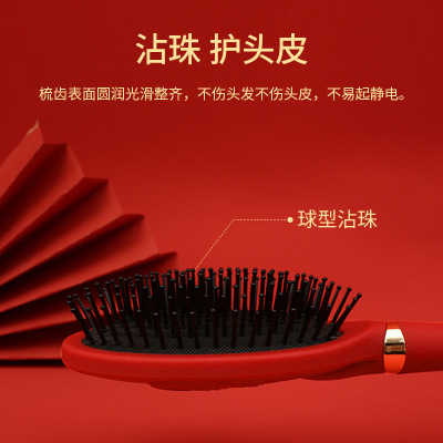 Luxurious Red High-End Padded Comb Hair Massager, Festive Wedding Comb, Volume Hair Styling Comb, Household Gift Hair Massager Comb