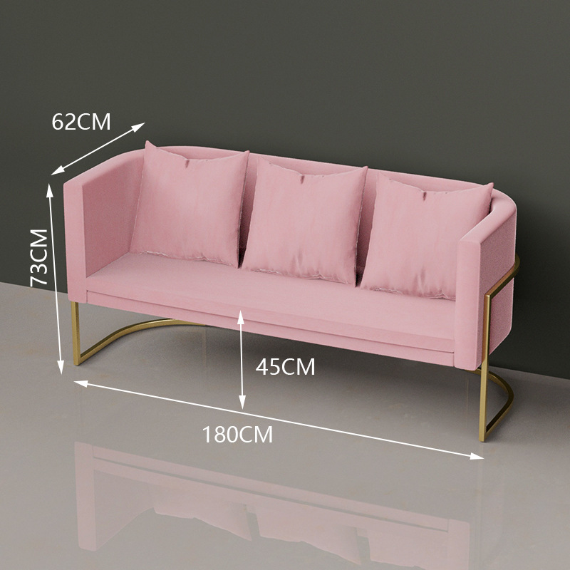 Reception area sofa set, coffee table combination, light luxury trendy booth, beauty salon leisure reception chairs, modern iron backrest chairs