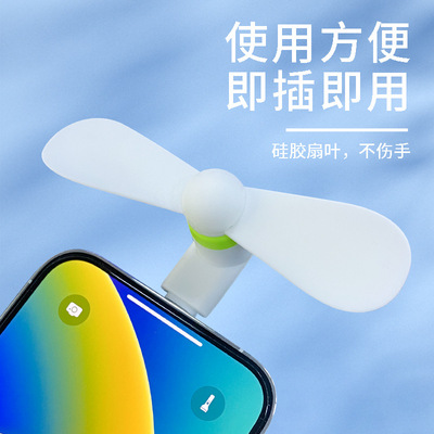 Creative USB Mobile Fan for Apple Android Type-C, Tri-in-One Mini Portable Small Fan Gift Wholesale