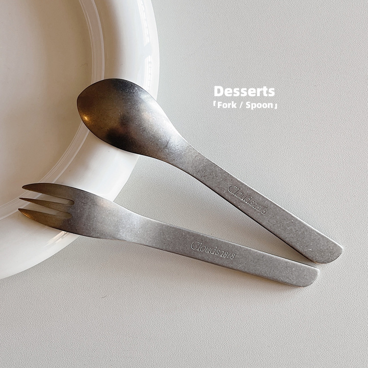 Japanese Snowflake Silver 304 Steel Party Fork and Spoon Commercial Pastry Mooncake Spoon and Fork Instagram Mirror Gold Ice Cream Spoon