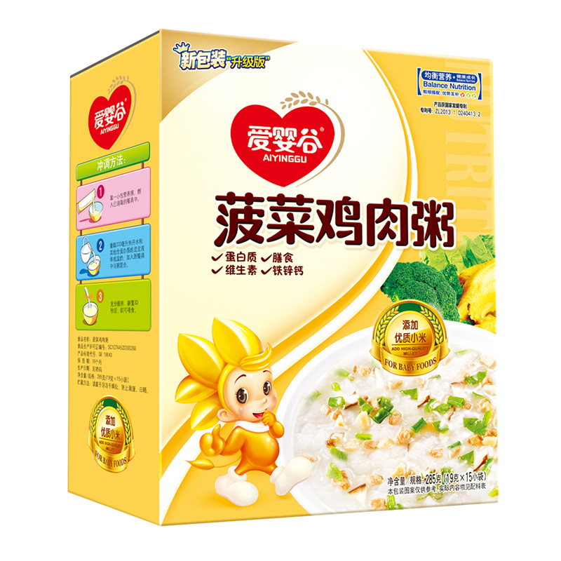Packaging size: 285g Spinach and Chicken Porridge (15 small packs)