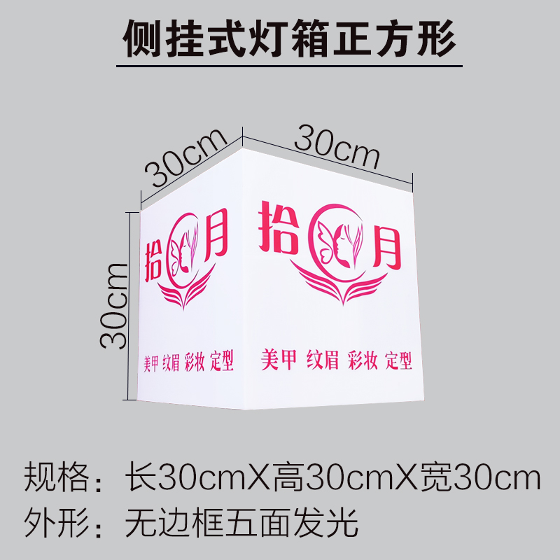 Side-mounted square five-sided luminous 30*30*30cm